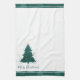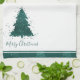 Moody Christmas Tree | Dark Midnight Teal Script Kitchen Towel