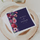 Moody Floral Wedding Napkins. Add elegance to your wedding reception with these beautifully designed paper napkins, featuring a lush side bouquet of watercolor florals in jewel tones against a deep navy blue background. Perfect for any season—from romantic fall and winter weddings to charming spring and summer garden celebrations—these customizable napkins enhance every place setting with sophistication and charm, making even the smallest details unforgettable. NOTE: the text is Ivory.