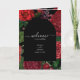 A beautiful design showcasing burgundy red vintage dark florals on a black background and a black arch. Perfect for anyone who loves moody vintage flower designs and dark color tones. An elegant black and red maroon retro floral design. A wildflower and roses wedding order of service design with modern elements. Matching wedding invitations and other stationery items are also available.