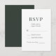 Complete your wedding suite with this moody forest green RSVP card, featuring clean minimalist typography and a rich, dramatic green palette. Perfect for elegant, modern, woodland, rustic, or nature-inspired weddings, this response card provides space for reply details, meal selections, and custom notes. A timeless and sophisticated design that pairs beautifully with any moody green or forest-themed wedding invitation. Fully customizable and print-ready.