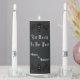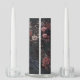 Wedding candles to match your Gothic wedding - the center candle is charcoal with ornate frame work and Gothic Calligraphy text - the taper candles are white with a black Old English Gothic Initials