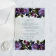 Elegant moody floral wedding invitations featuring a top and bottom border of purple and burgundy flowers, lush green foliage, and dark berries with your choice of a frosted or transparent acrylic background. "Together" is displayed in elegant, modern typography. Personalize the purple floral wedding invitation with your names and wedding details. The design coordinates with our Moody Gothic Floral wedding collection.