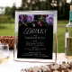 Moody Gothic Purple Floral Wedding Drink Menu Sign