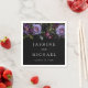 Elegant floral wedding napkins featuring a top border of purple and burgundy flowers with lush green foliage and dark berries. Personalize the purple floral wedding napkins with your names and wedding date. The personalized floral wedding napkins are perfect for your wedding reception, engagement party, rehearsal dinner, and couples shower. Designed to coordinate with our Moody Gothic Floral wedding collection.