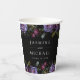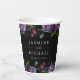 Elegant floral wedding paper cups featuring a top and bottom border of purple and burgundy flowers with lush green leaves and dark berries. Personalize the purple floral paper cups with your names and wedding date. Use these chic floral paper cups at your wedding reception, engagement party, rehearsal dinner, and couples shower. The moody floral wedding cups were designed to coordinate with our Moody Gothic Floral wedding collection.