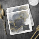 Your dreams are finally coming true and this flowing, alcohol ink abstract design sets the perfect tone for the fabulous wedding you always imagined. In shades from charcoal to black, accented with glittering gold, the coordinating paper napkin shown here provides a template to easily add your initials, wedding date and thank you message. Search ID988 to see other pieces in this coordinated wedding set.