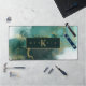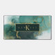 This flowing, alcohol ink abstract design sets the perfect tone for any business professional. In shades from sea glass green to dark emerald, accented with glittering gold, the desk mat shown here, provides a template to easily add your monogram and name. Search Id988 to see other products with this eye-catching design, including matching business cards.