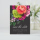 Moody Luxe Floral Vibrant Pink Black Photo Wedding Save The Date