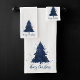 Moody Merry Christmas | Classy Dark Navy Blue Tree Bath Towel Set