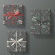 Three unique prints on 3 sheets of wrapping paper, perfect for the holidays. This set features three dark set, moody, contemporary seamless patterns of mistletoe, with winter florals, botanicals, greenery, sprigs, branches, holly, and the like, and set on cool, deep grays / charcoal black.