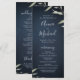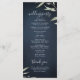 Modern chic minimal watercolor botanical foliage greenery design on moody navy blue background, simple and elegant with calligraphy names, great round wedding program cards for modern wedding, rustic wedding, and botanical garden wedding in summer and fall at night.