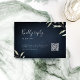 Modern chic minimal watercolor botanical foliage greenery design on moody navy blue background, simple and elegant, great QR code rsvp card for modern wedding, rustic wedding, and botanical garden wedding in summer and fall.
