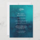 This moody ocean watercolor elopement announcement is perfect for your simple tropical boho elopement. It is designed with minimalist white tropical leaves and a stunning dark blue-green background.