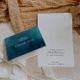 This moody ocean watercolor thank you card is perfect for your simple tropical boho wedding. Designed with minimalist white tropical leaves and a stunning dark blue, green background.