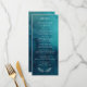 This moody ocean watercolor wedding dinner menu is perfect for your simple tropical boho wedding. It is designed with minimalist white tropical leaves and a stunning dark blue-green background.