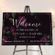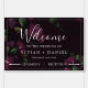 This moody purple blooms black arrows 36x24" welcome foam board is perfect for a modern wedding. The elegant floral design features dark plum purple tulip flowers with emerald green leaves. Customize the sign with the name of the bride and groom, and the date of the wedding.