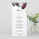 This moody purple blooms wedding dinner menu card is perfect for a modern wedding. The elegant floral design features dark plum purple and white tulip flowers with emerald green leaves and gold leaf accents. This menu can be used for a wedding reception, rehearsal dinner, or any event.