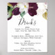 Moody Purple Blooms Wedding Drinks Menu Sign