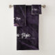 Modern stylish bath towels purple with dusty gold on monogram-name (the gold is a digital effect, not real foil).