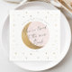 A pretty, baby shower party napkin featuring gold star frame and moon with soft pastel watercolor shadow on a clean white background.