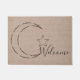 Moon and stars celestial Welcome quote saying hipster faux linen burlap jute background doormat.