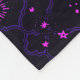 This beautiful celestial design features a hot pink moon, stars, and clouds over a dark Moroccan-style pattern background.