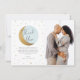 A pretty, portrait photo baby shower thank you card featuring gold star frame and moon with soft pastel watercolor shadow on a clean white background.