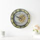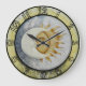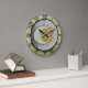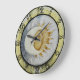 This clock features a moon and sun against a light blue background. It is surrounded by antique colored frame with black colored numbers wrapping around it. Perfect for those who enjoy celestial, cosmos, or space decor.