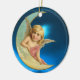Whimsical cute blonde haired ,blue eyed romantic angel hanging on the Moon with a bright 3D blue sapphire gem stone bling