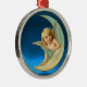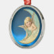 Whimsical cute blonde haired ,blue eyed romantic angel hanging on the Moon with a bright 3D blue sapphire gem stone bling