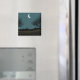 This design features a charming illustration of a crescent moon being held on a string, as though it were a balloon. A girl is sat on a park bench holding the string.