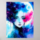 Moon Child. Fantasy Art with beautiful, surreal anime-style goddess. AI-generated artwork.