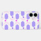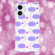 Do you like celestial theme phone cases? This phone case has a pattern of moon, stars and clouds in various shades of pink and purple.