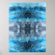 Watercolor art of luminous moon jellyfish in a blue batik style print design. Unique art in blue and white pattern design. Ocean theme.