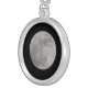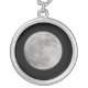 Photo of a full moon necklace. Sterling silver chain is 18" with 3" extender and lobster claw clasp. Necklace arrives in a special black felt bag. Finished with UV resistant, waterproof, glossy coating Charm Diameter: 1.44 inches Depth: .19 inches Chain Length: 18 inch with 3 inch extender
