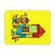 Artist: Lee deGroot | Boy wearing fishbowl helmet stands next to homemade rocket with dog inside