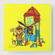 Artist: Lee deGroot | Boy wearing fishbowl helmet stands next to homemade rocket with dog inside