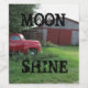 "Moon Shine" Liquor Bottle Label with farm shed and beat up old red truck in background.