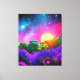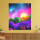 Abstract artistic landscape inspired by Space and tropic nature. Blend of magical colors like purple, green and pink. Ideal style for living room, bedroom or children's room.