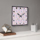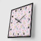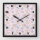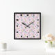 Moon, Stars and Clouds Pattern on Pink Square Wall Clock