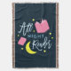 Curl up during the cool weather with this bookish blanket featuring the words "All Night Reader" surrounded by the yellow moon and stars and pink books against a dark blue background. It would look great in your reading nook or home library.
