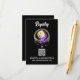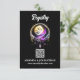 A beautiful white 3D looking full moon with ornate detail on it is framed by a gray cloud circle that has diamond and circle wiccan symbols hanging off it. The generative content graphic appears to sparkle against a black background that may be changed to any color of your choice. This chic and stylish illustration is ideal for a starry night quinceanera; a moon and stars special birthday party; a celestial engagement; an over the moon wedding; a gypsy fortune teller birthday theme party or wiccan upmarket event. Replace the QR code with your own.
