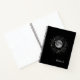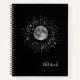 A unique abstract notebook featuring a cosmic moon and starburst design on a black background. Perfect for journaling, school notes, or as a thoughtful gift for dreamers, stargazers, and space lovers.”