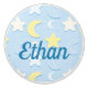 Moon and stars in soft yellow over a light blue sky background. Perfect for kids and babies, but good for anybody and anywhere.