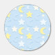 Moon and stars in soft yellow over a light blue sky background. Perfect for kids and babies, but good for anybody and anywhere.