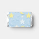 Moon and stars in soft yellow over a light blue sky background. Perfect for kids and babies, but good for anybody and anywhere.