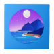 Moon, Stars Sea and Mountains in Violet and Blue Ceramic Tile