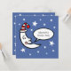 An illustration of the moon in his night cap surrounded by stars in a clear night sky.
