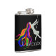 Well made flask, a little better than I had expected. Flask came in clear plastic box which gave it a nice presentation when I took it out of the zazzle packaging. Image is not printed on flask but on sticker. Don't know how this will hold up I haven't used it yet. This would make a Great gift! I plan to purchase more for friends! Cheers. I thought a little brighter than computer. Very crisp, writing wasn't