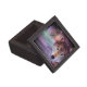 I am so pleased with this little trinket box! The website photo doesn't do it justice. The photo on top is so glossy and beautiful! The colors are awesome. The lid and the box both have 2 little magnets so that the lid stays on, which I love. It arrived in good time. My 11 year old granddaughter is going to love it. Many thumbs up! There was no printing on this item, but the colors in the photo of the box lid are beautiful and vivid.